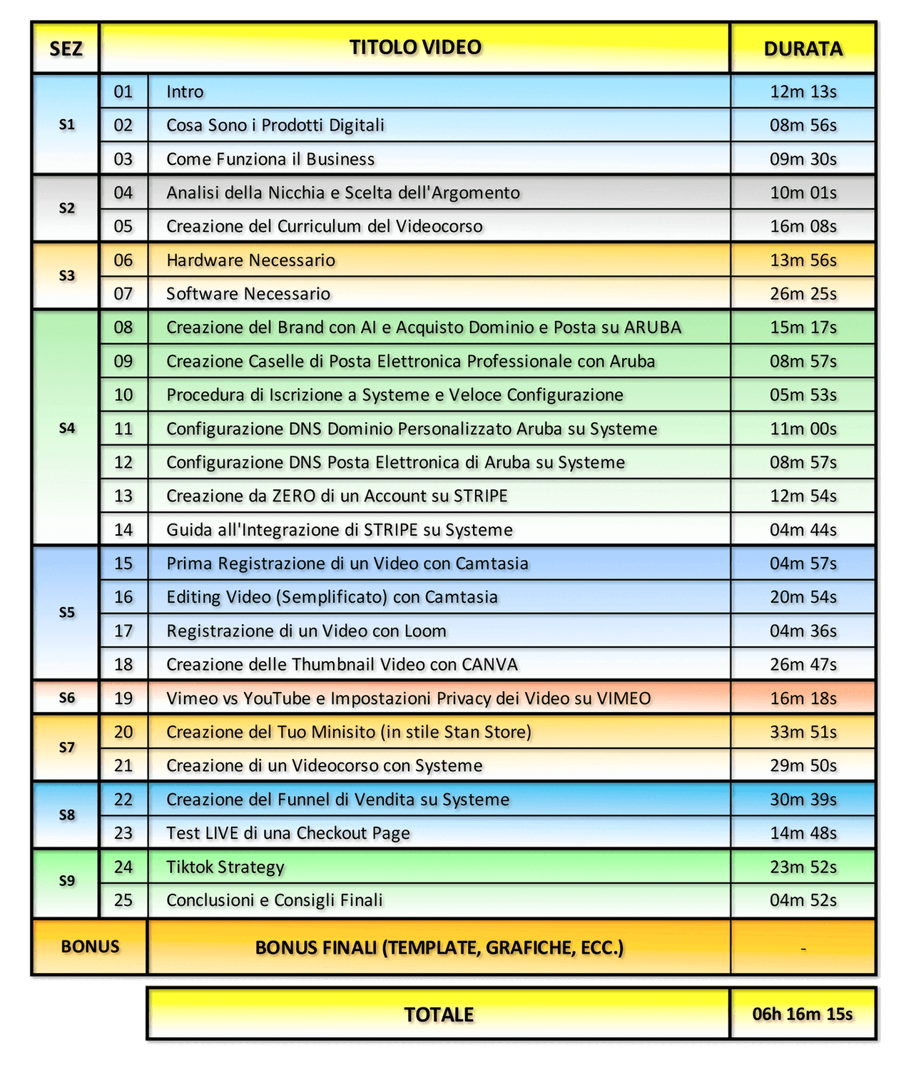 I software che utilizzo nel videocorso sono per lo più tools che si usano online (come Canva, Loom, Google Sheet o Systeme) da browser come Chrome o Safari. Il software di editing video (CAMTASIA) esiste sia per Mac sia per Windows, quindi non ci sono problemi.